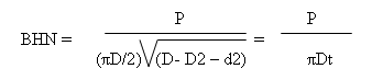 JA Brinell于1900年提出了第一个被广泛接受并标准化的压痕硬度测试。布氏硬度测试包括在3,000 kg质量(〜29400 N)的载荷下用直径10mm的钢球压入金属表面。对于软金属,负荷减小到500公斤,以避免产生过深的压痕;对于非常硬的金属,使用碳化钨球以最大程度地减少压头的变形。在标准时间内(通常为30 s)施加载荷,并在除去载荷后用低功率显微镜测量压痕的直径。应当对直角的压痕直径进行两次读数的平均值。布氏硬度值(BHN)用载荷P除以压痕的表面积表示。用以下公式表示: